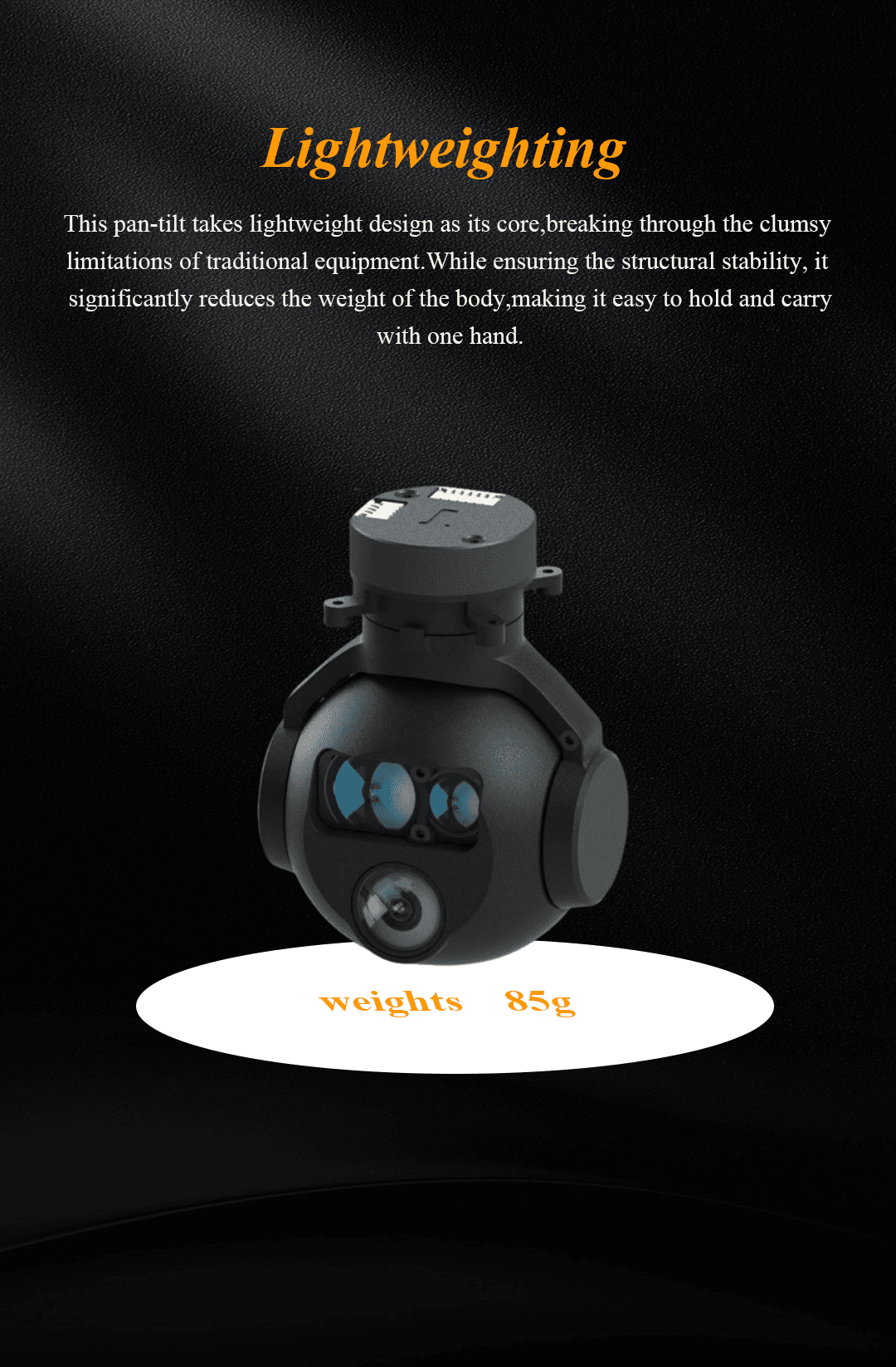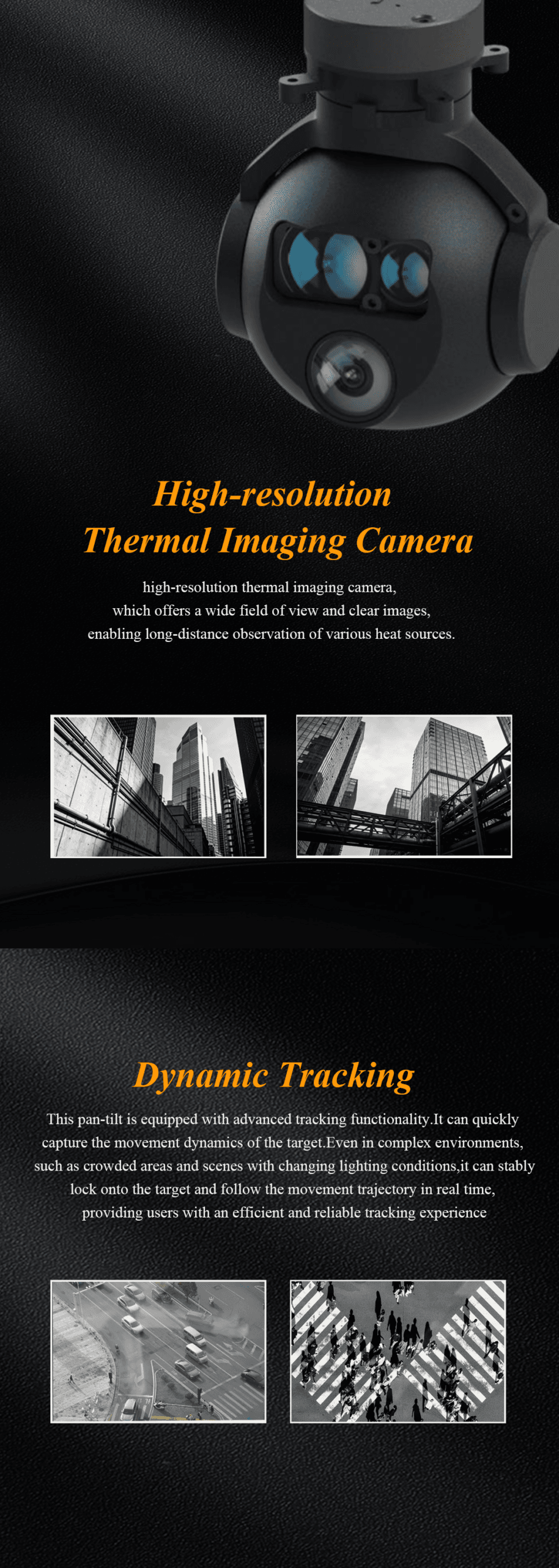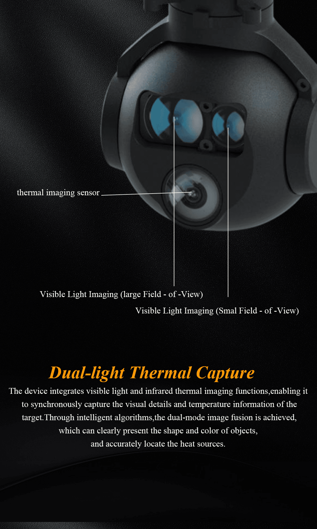 • UAV‑mounted Reconnaissance: Ideal for border patrol, search and rescue, and power line inspection — delivers long‑distance dual‑band observation and real‑time tracking on compact drones.