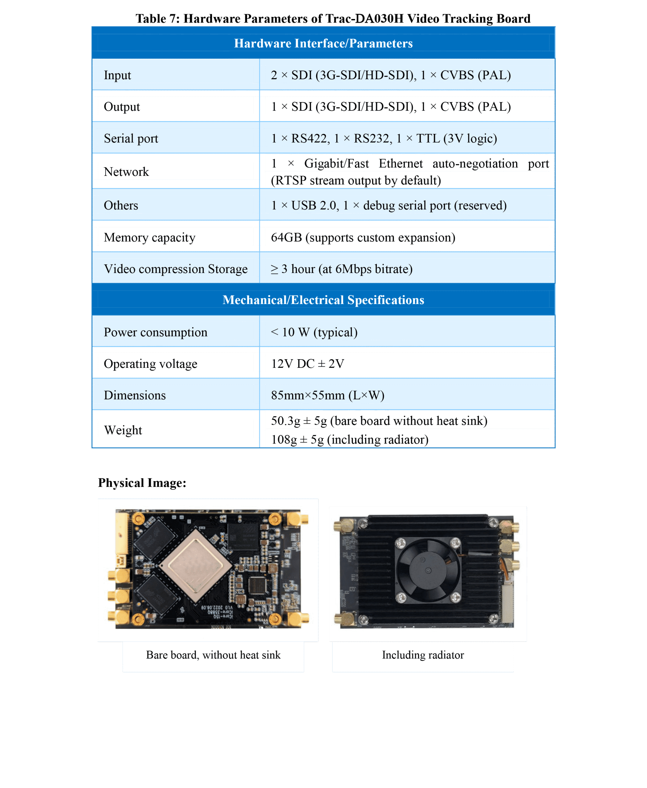 | Weight | 50.3 g ± 5 g (bare board) / 108 g ± 5 g (with radiator) |